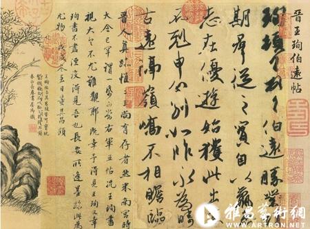 齐白石还画了很多《不倒翁》,如果不题跋,那只是一只玩具,并无深意。但他在不同的《不倒翁》上题下了不同的诗句,如“乌纱白扇俨然官,不倒原来泥半团,将汝忽然来打破,通身何处有心肝。”又如“岁无心肝有官阶”、“官袍楚楚通身黑”、“自信胸中无点墨”。画上增加了题跋可谓点石成金,艺术的价值就大大提高了。要我看来,这题跋的价值大大超过画的价值。白石老人的正直、可爱以及对官场黑暗龌龊的憎恶,就在题跋中表现出来了。人们看到这幅画所能引起的共鸣以及不能忘怀,也全在这题跋中。是题跋赋予了这幅画灵魂。 题跋的“题”,本意是前额、额头,“跋”的本意是用足踏。一指头(前),一指尾(末),其后,写在书籍或书画作品、碑帖前面的文字叫题,写在其后的叫跋。段玉裁《说文解子·足部》云:“题者,标其前;跋者,系其后也。”再后在书画作品上题字(他人题、自己题)也都统叫题跋了。 宋人开始在画上题诗、词、文等,画意之不足,诗文以补之,元大兴,明清因之且大发展,有的一幅作品上画仅占百分之二十,而题跋占百分之八十。宋代文官大增于前代,文官多人浮于事,便作画自娱,后来发展成为主流。文人著文,善书,于是画画亦以书法笔意,画上大题诗文,形成了中国画大异于其他国家画的更重要的特色。也使中国画更加人文化。但也要求画家必须是文人,必须有文化。这是中国画的进步。文化才能提高人的素质,因此,画中国画的人应该有很高的素质,而画中国画的人多了,也就使整个民族素质提高了。