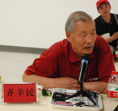 1958年,我和齐辛民一起考入山东艺专,我和他在一个班,他是我的老大哥。当我们还不会画画的时候,他已经画得非常好了。当时,山东艺专有一个非常有名的老师叫关友声,他是一位山水画家,他说,“大气学辛民”,要同学们向他学习,这让同学们很嫉妒。 齐辛民在山东的时候相当不容易,大家看他最后画自画像,正在写“不容易”三个字,深有感慨。在我看来,他有两点不容易。第一点是生活不容易。齐辛民出身于农民家庭,家里经济条件不好,他的祖父、父亲靠编席子卖钱供他读书。他小学读完了以后,在当地没能读中学。而到山东艺专,为什么年龄这么大还和我同班同学?就是因为中间耽误了六、七年的时间,没有钱读书。他从山东艺专毕业之后,在淄博工作,每个星期天还要回家去劳动一天,相当不容易。第二点是读书不容易。读书的时候说真话,在极左的思潮里面是要受到批判的。我们俩刚开始分在一个班,后来分到两个班里,他们班突然有一个同学说丢了钱了,赖在他身上,这让他背黑锅背了一年多,最后证明是冤枉的,才给他平反,很不容易。读书不容易,为人生不容易,为艺术更不容易。 当年学生时期,他在我们班里面就是画得最好的,毕业以后,不断的有新作品创作出来,有一幅国画《看新磨》的作品就受到了于希宁老先生的高度评价!村里来了新磨了,是电动的机器的磨了,齐辛民通过两个小孩子站在老石磨上,踮起脚透过窗口看屋里新磨的镜头描述对新磨这一新事物的好奇场景。于希宁老师对我们说:你们看齐辛民这个脑子,他画《看新磨》是从什么角度来画?你们要好好向他学习! 他的《看新磨》入选第四界全国美展,同时他的年画也不断的入选全国美展并被中国美术馆收藏,那个时候和我没有关系,因为我还没有到美术馆去工作,是凭他的真实的能力被收藏的。这证明他美术作品的成就在六十年代就是全国高的高水平。 文革之后,他主攻花鸟画。上个世纪90年代,他在中国美协美协主办的第一届全国花鸟画大展中获得最高奖,被特邀参加全国的花鸟画学术研讨会,成为全国知名的花鸟画家。 大家看他的画,蓬勃、大气、苍拙、老辣、明丽、明艳,充满着光明,充满着乡土气息,充满着他70岁以后,衰年变法的想法,我们著名的艺术大师齐白石,他呀和齐老爷子一个姓,从来不和齐白石攀比,但是他学他的一种精神,衰年变法。他变化了造型,变化了构思,变化了色彩,变化了笔墨,他在新时期是敢于创造的一个花鸟画家,取得了相当好的成绩。 所以,我们今天开一个研讨会对他的艺术给一评价、给他一鼓励、给他一支持,同时向他提出一些问题和建议,我们共同交流。