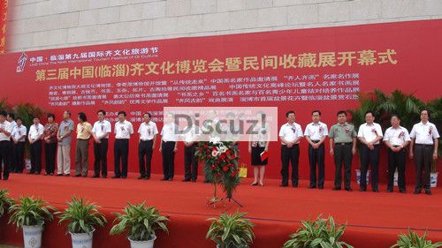 中国画在线网站9月11日电,第三届中国(临淄)齐文化博览会暨民间收藏展在齐国故都山东省淄博市临淄区开幕,在为期六天的时间里,陶瓷、青铜器、古钱币、书画、玉杂、拓片、紫砂、名砚等上千件收藏品将集中展示,并将举办修复文物展、中国画名家作品邀请展、盆景赏石展销、和田玉展销等系列活动。